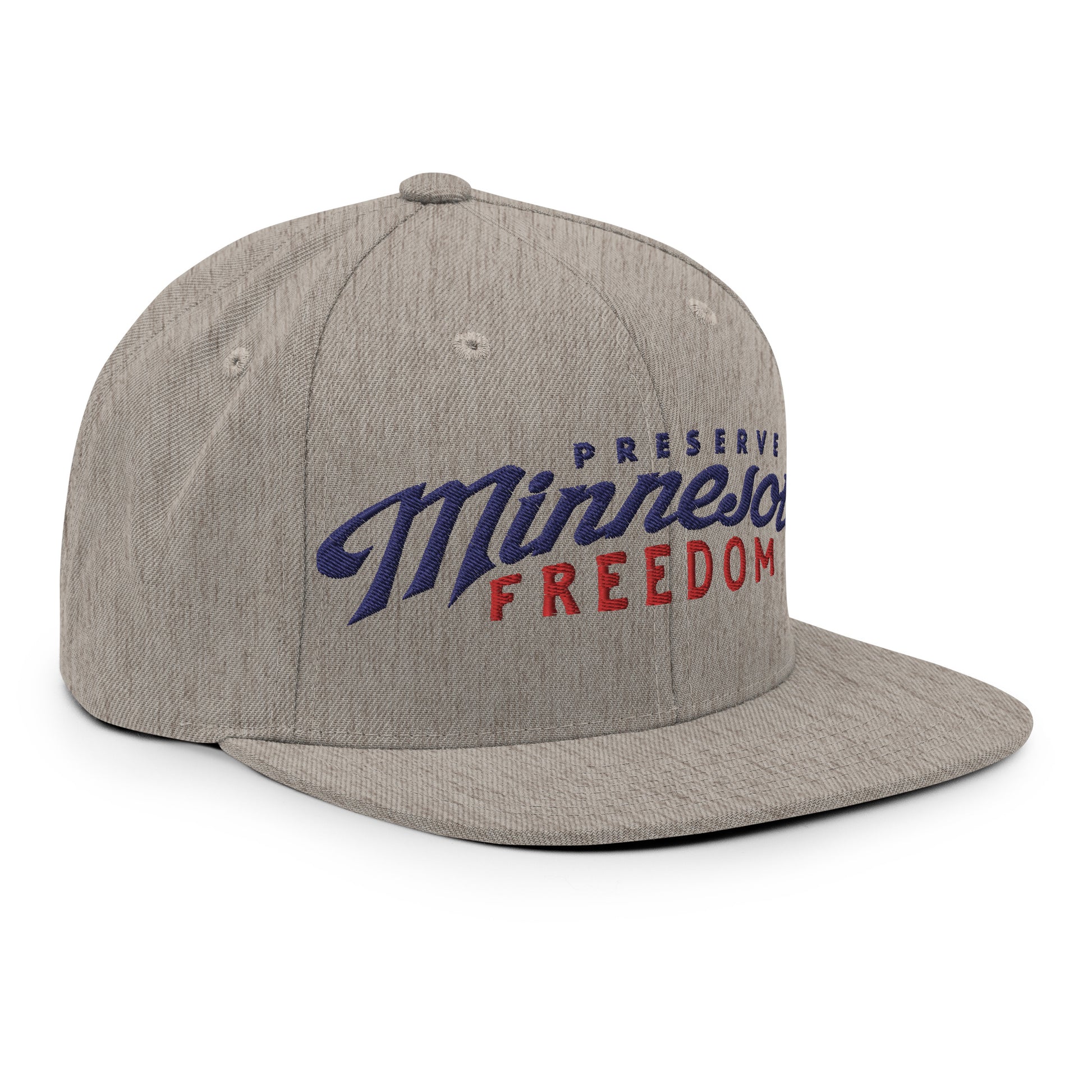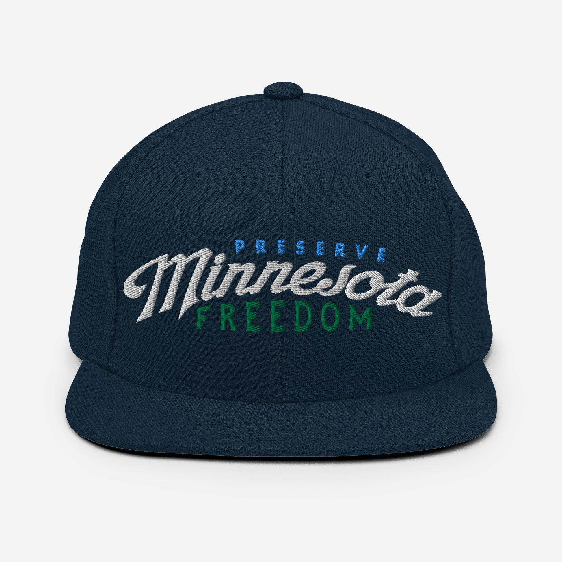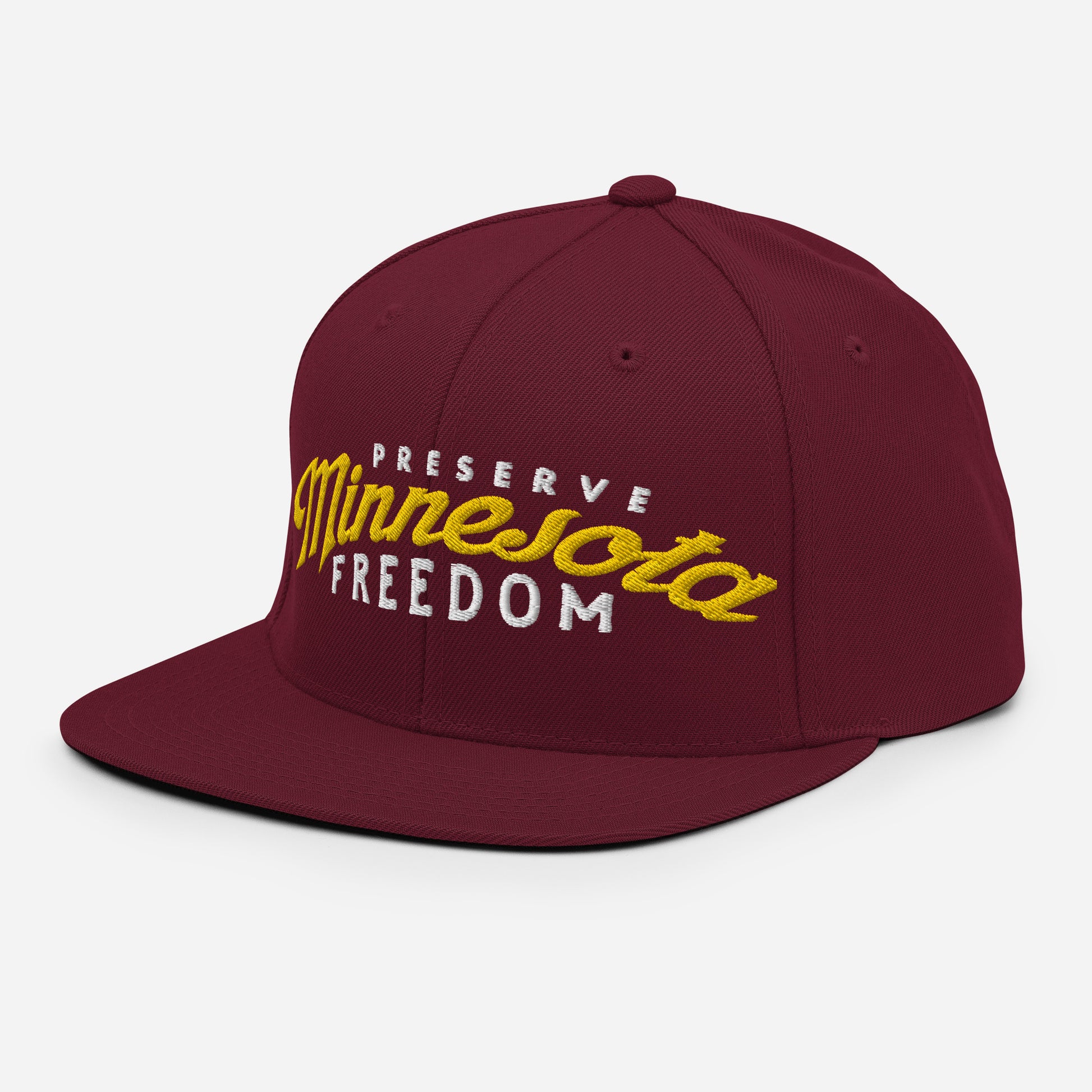 Preserve Minnesota freedom. It's our most valuable natural resource. This hat is structured with a classic fit, flat brim, and full buckram. The adjustable snap closure makes it a comfortable, one-size-fits-most hat.